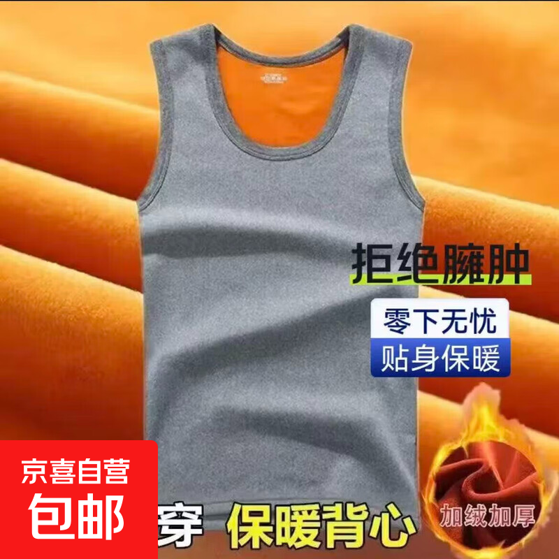2025冬新款中老年修身风无袖背心坎肩潮流简约百搭加绒加厚短袖男 浅灰色 加绒马甲 XL