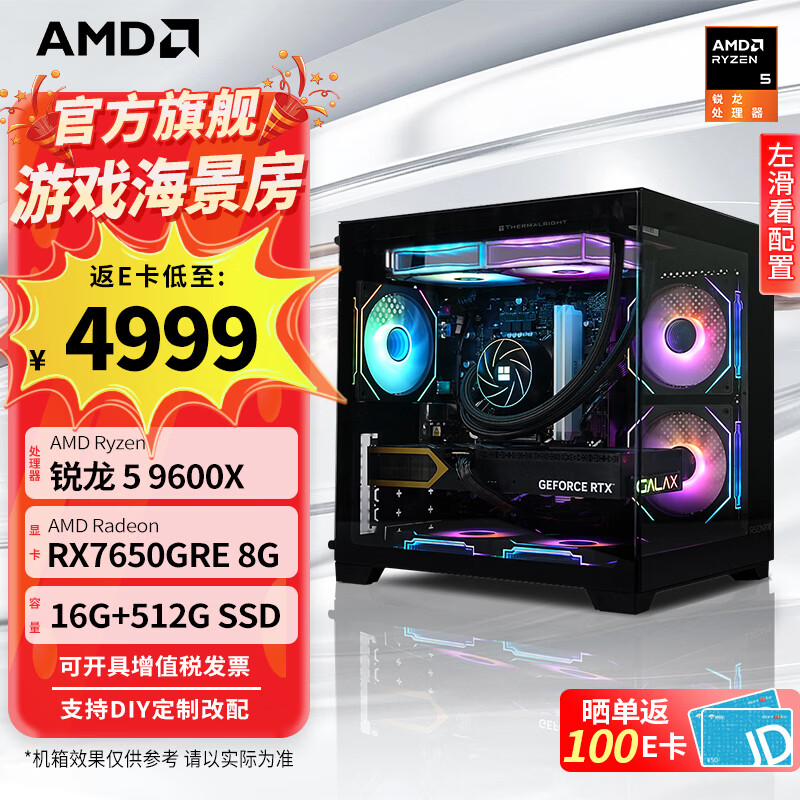 AMD锐龙 5700X 9600X主机 5070/5060TI/5060显卡三角洲行动直播游戏电竞台式电脑DIY组装机海景房整机 配置五 R5 9600X/7650GRE