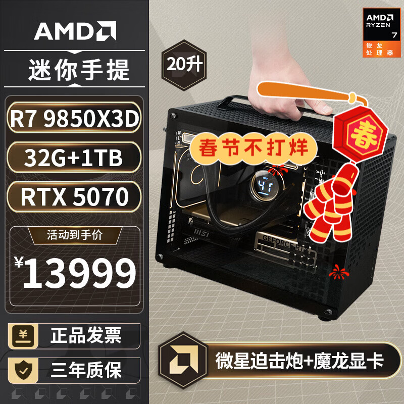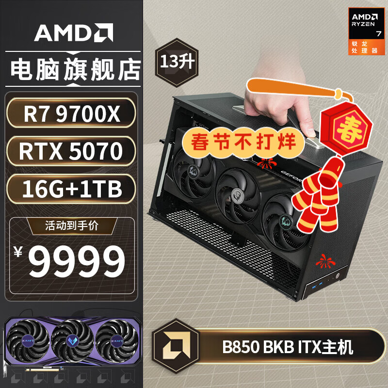 AMDR7 9700X/5070Ti/9070XT/5060TI显卡B850BKB迷你主机手提游戏ITX台式电脑主机组装电脑整机9800X3D 配置五丨R7 9700X/RTX 5070