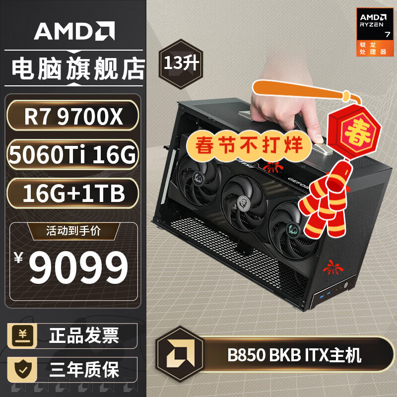 AMDR7 9700X/5070Ti/9070XT/5060TI显卡B850BKB迷你主机手提游戏ITX台式电脑主机组装电脑整机9800X3D 配置四丨R7 9700X/RTX 5060TI