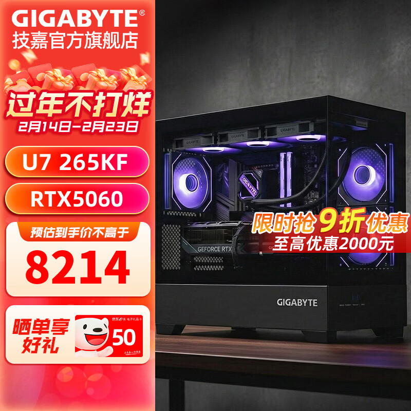 技嘉全家桶RTX5080/5070Ti/5060Ti/intel英特尔15代酷睿Ultra7 265KF电竞游戏发烧设计台式电脑主机 标准丨一:U7 265KF丨RTX5060