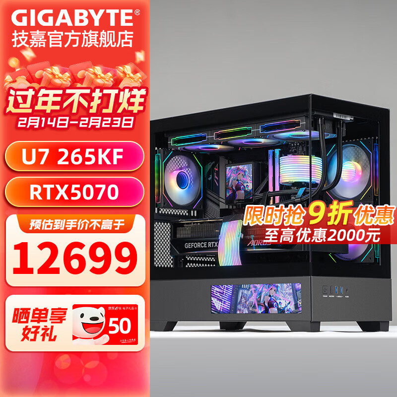 技嘉全家桶RTX5080/5070Ti/5060Ti/intel英特尔15代酷睿Ultra7 265KF电竞游戏发烧设计台式电脑主机 豪华丨一:U7 265KF丨RTX5070