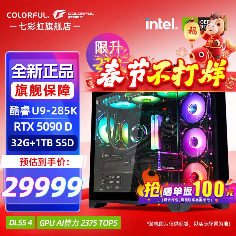 七彩虹(Colorful)酷睿15代U7 265KF RTX5060TI/5070TI/5080 5090D显卡 电竞游戏黑神话悟空AI设计台式电脑组装机 配六:U9 285K丨32G丨2TB丨5090D 官方全新保障