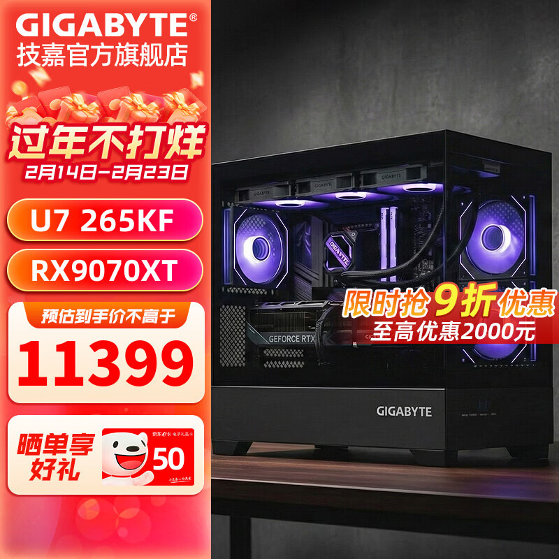 技嘉全家桶RTX5080/5070Ti/5060Ti/intel英特尔15代酷睿Ultra7 265KF电竞游戏发烧设计台式电脑主机 标准丨六:U7 265KF丨9070XT魔鹰
