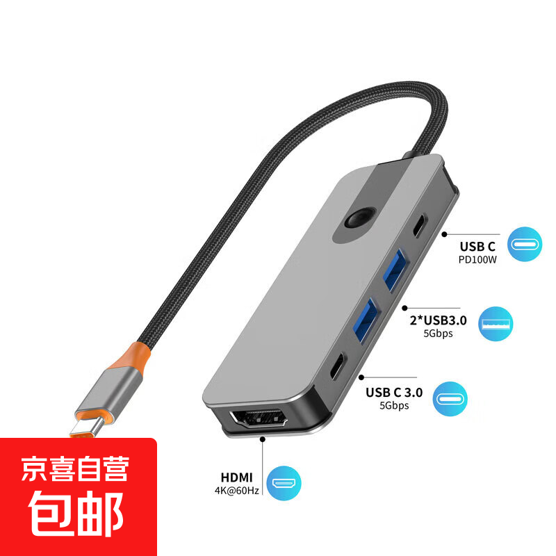 Type-C拓展坞雷电扩展坞转HDMI转接头USB多接口转换器通用MacBook mini电脑笔记本平板 5合1【4K60hz】HDMI+USB3.0+PD
