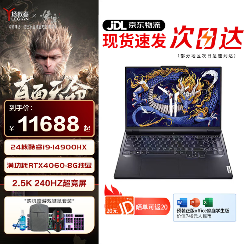 联想拯救者Y9000P AI元启版 2025畅玩黑神话悟空电竞游戏笔记本电脑 满血5060/5070学生娱乐设计办公 i9-14900HX丨RTX4060 黑 高色域屏 64G内存 4TB固态 升级款 16英寸 2.5K高刷电竞屏