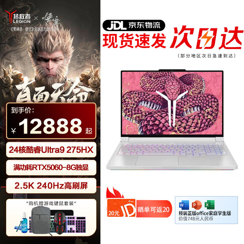 联想拯救者Y9000P AI元启版 2025畅玩黑神话悟空电竞游戏笔记本电脑 满血5060/5070学生娱乐设计办公 Ultra9-275HX RTX5060白丨元启版 32G内存 2TB固态 升级款 16英寸 2.5K高刷电竞屏