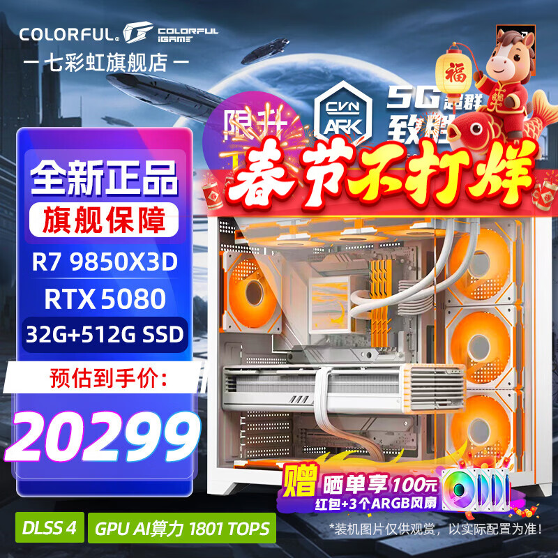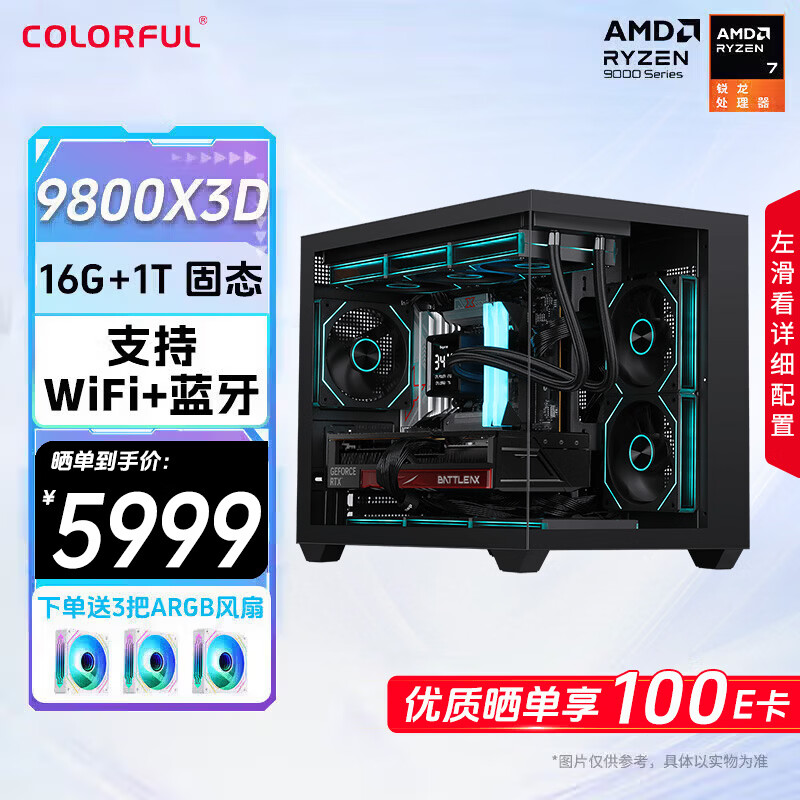 七彩虹海景房主机AMD锐龙R7 9800x3d搭5080/5070TI 5060TI显卡 千帧电竞 游戏直播AI主机 组装电脑 配九:R7 9850X3D丨32G丨5080 稀缺货源 全新原装