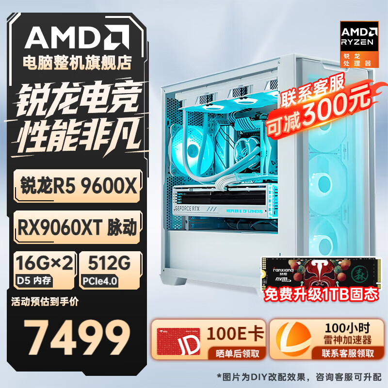 AMD锐龙5 9600X 9500F RTX5060TI 5070Ti 5060电脑主机电竞整机游戏台式机三角洲行动组装电脑 配置七 9600X RX9060XT 3A整机