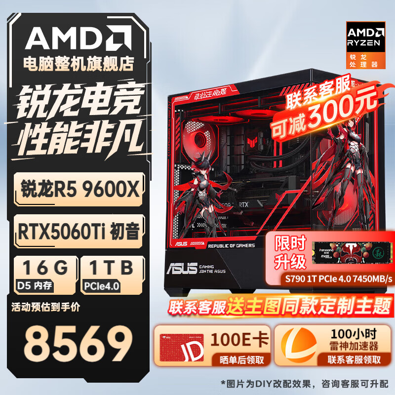AMD锐龙5 9600X 9500F RTX5060TI 5070Ti 5060电脑主机电竞整机游戏台式机三角洲行动组装电脑 配置六 9600X 9070GRE 3A电竞主机