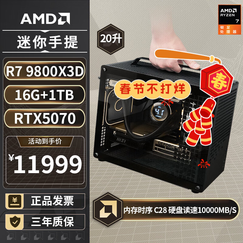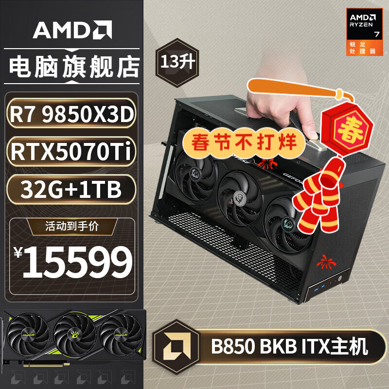 AMDR7 9700X/5070Ti/9070XT/5060TI显卡B850BKB迷你主机手提游戏ITX台式电脑主机组装电脑整机9800X3D 配置十丨R7 9850X3D/RTX 5070TI