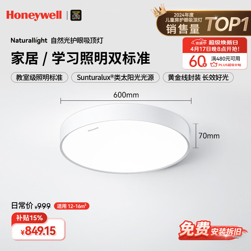 霍尼韦尔(Honeywell)【一价全包】护眼吸顶灯卧室灯儿童房书房学习灯LED全光谱灯03B02