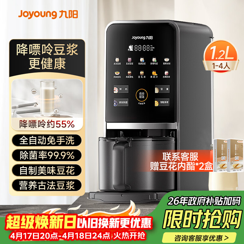 九阳豆浆机1.2L家庭容量降嘌呤浆古法浆2-4人可预约免手洗可做豆花家用全自动多功能破壁机K7
