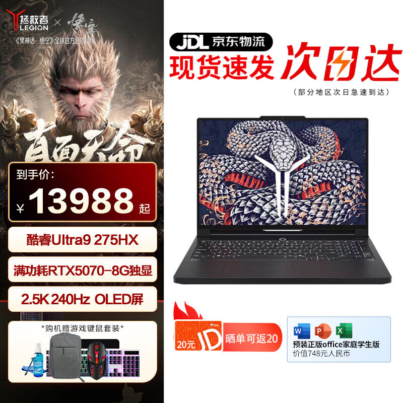 联想拯救者Y9000P AI元启版 2025畅玩黑神话悟空电竞游戏笔记本电脑 满血5060/5070学生娱乐设计办公 Ultra9-275HX 5070Ti 白丨至尊版 64G内存 4TB固态 升级款 16英寸 2.5K高刷电竞屏