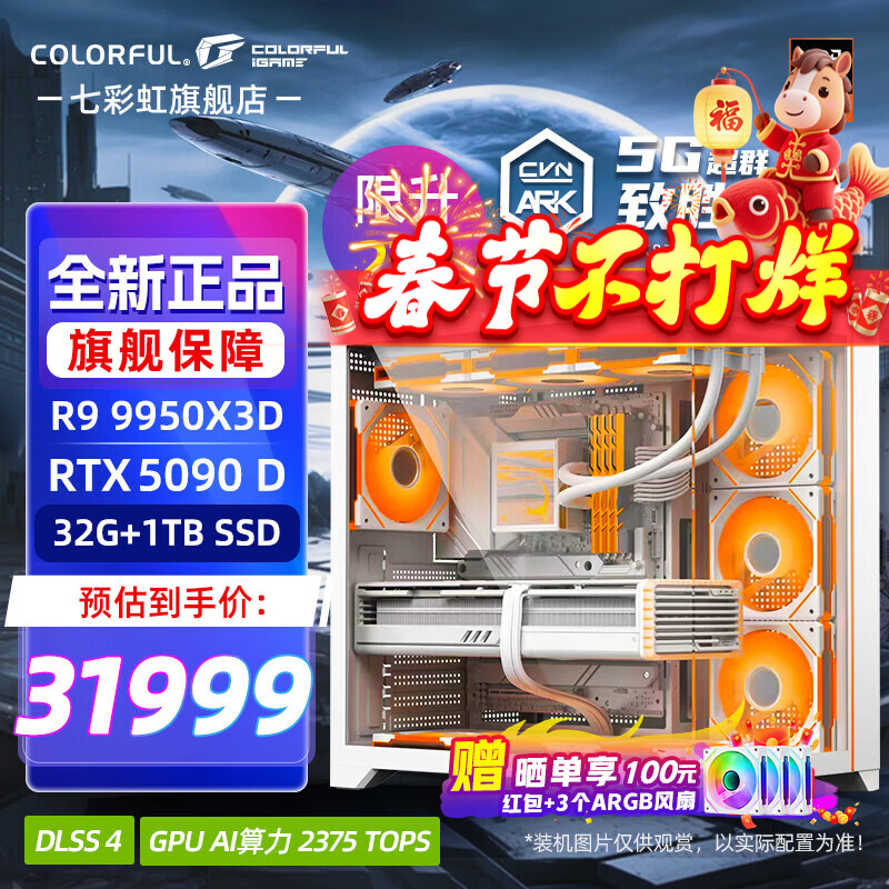 七彩虹海景房主机AMD锐龙R7 9800x3d搭5080/5070TI 5060TI显卡 千帧电竞 游戏直播AI主机 组装电脑 配十:R9 9950X3D丨32G丨5090D火神 稀缺货源 全新原装