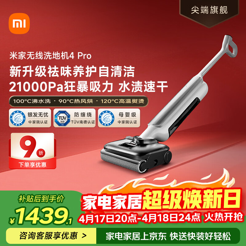 米家 小米洗地机4Pro 扫地吸拖一体 21kPa飓风吸力 100℃沸水自清洁 躺平洗地机 【家礼热销专享】