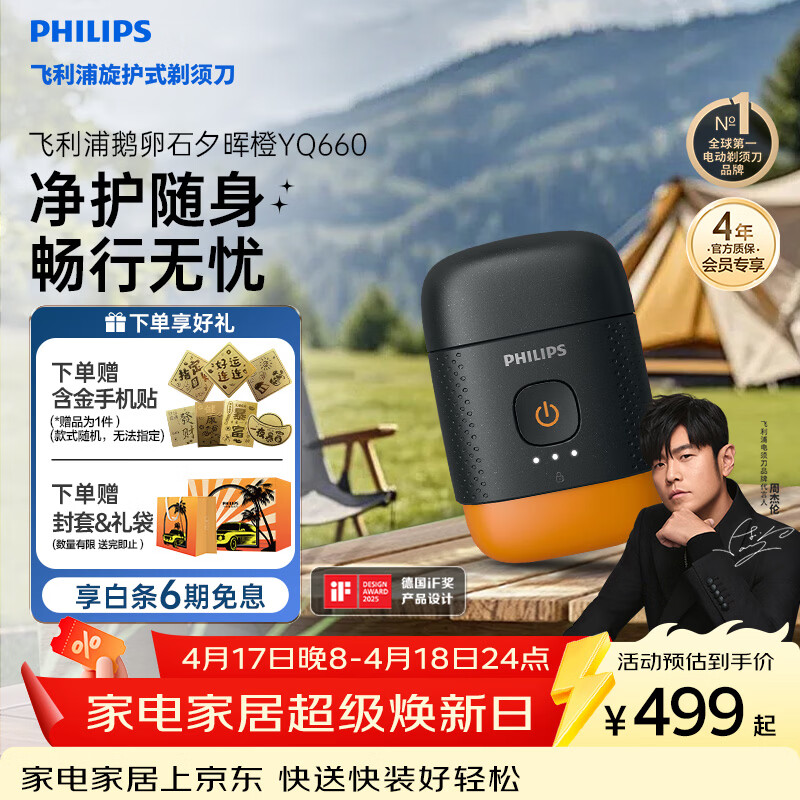 飞利浦电动剃须刀鹅卵石便携款剃须刀 风驰切剃系统配鼻毛修剪器夕晖橙 车载好物 生日礼物送男生父亲