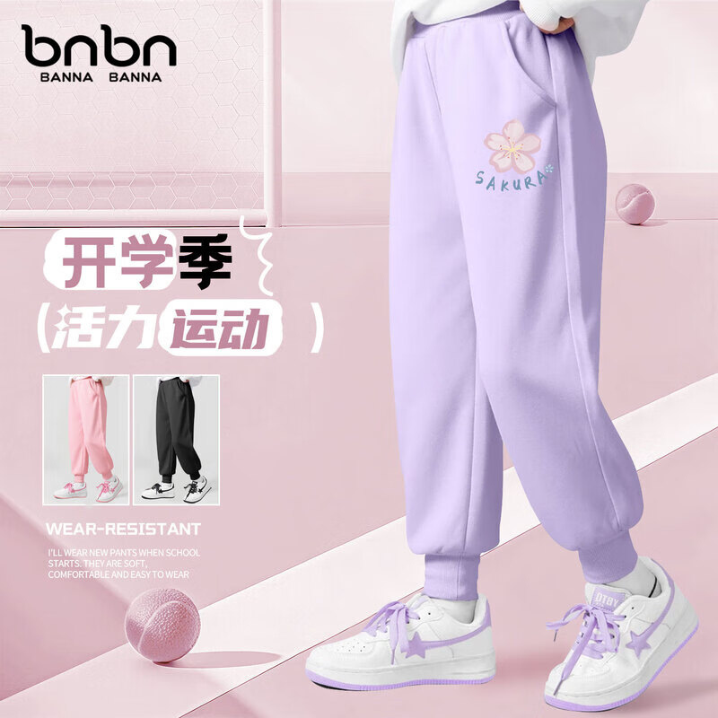 班纳班纳童装儿童卫衣套装2025新款秋季运动潮流宽松女童休闲裤男童上衣 N淡颜花K香芋紫 110