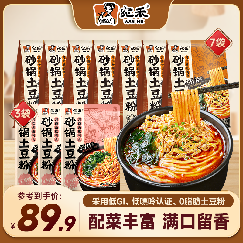 宛禾砂锅土豆粉速食夜宵方便食品肥汁米线麻辣烫米粉带料包 土豆粉7袋+286g乐享版土豆粉3袋