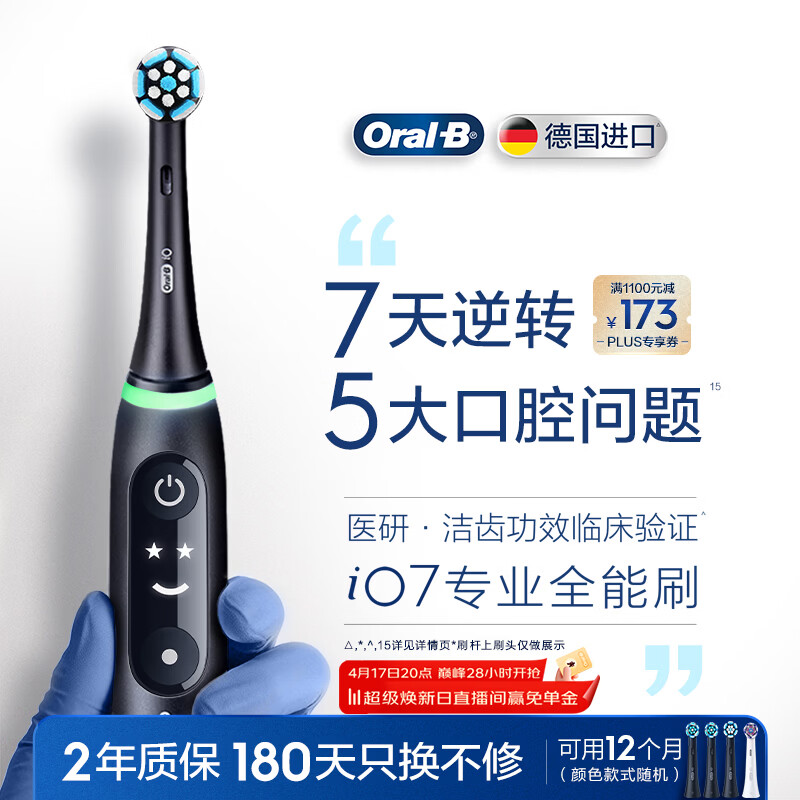 欧乐B德国进口智能电动牙刷成人iO7专业全能刷黑色刷头*4深度清洁护龈京东自营热卖榜情侣送礼生日礼物