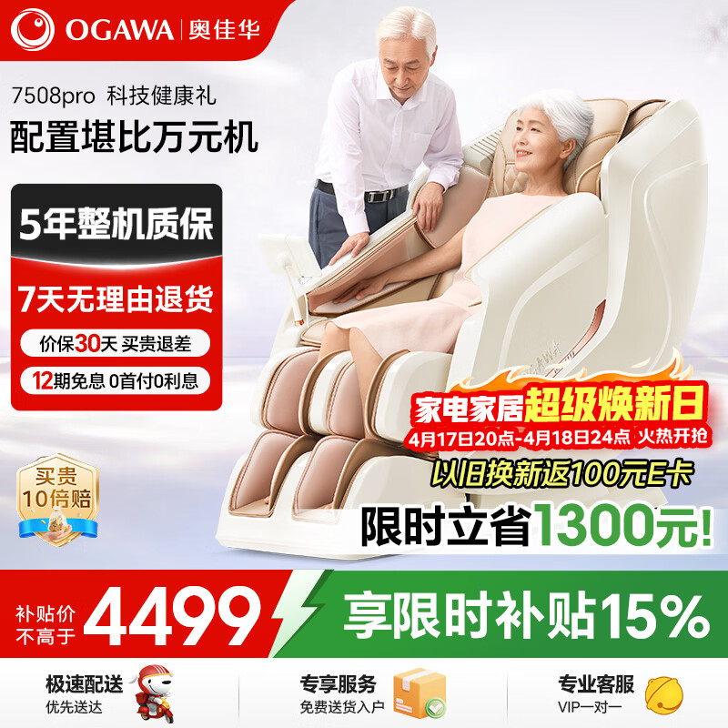 奥佳华【自营专供】按摩椅家用小型太空舱全身零重力全自动送老人生日节日礼物7508pro浅香云杏