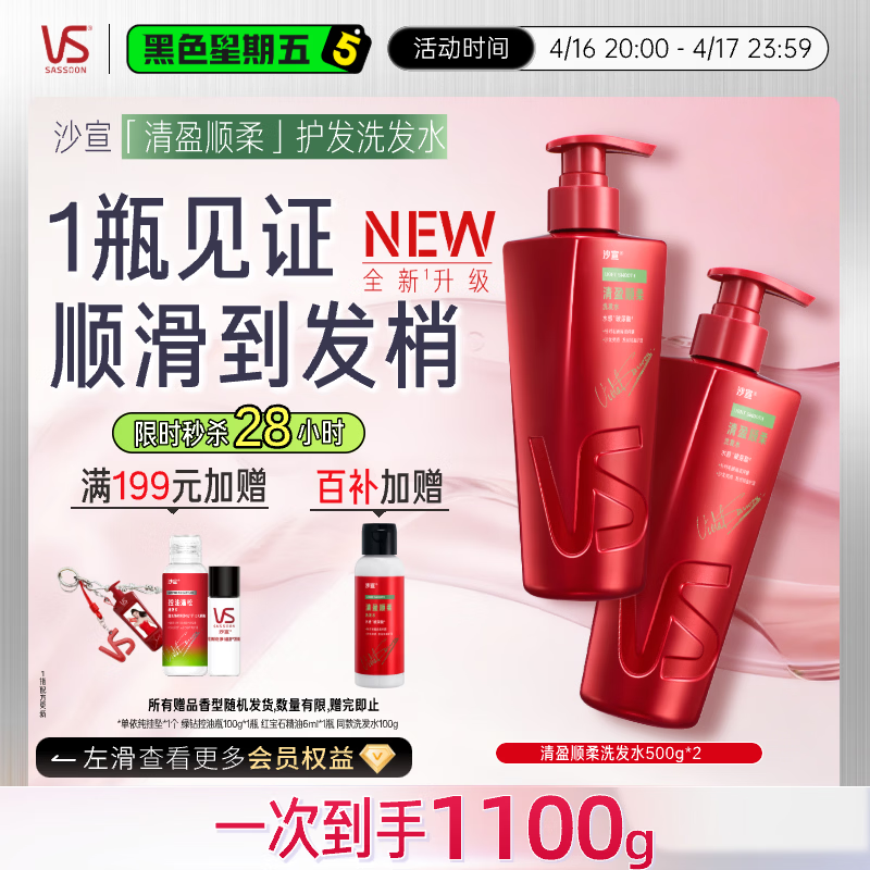 沙宣大红瓶清盈顺柔500g*2洗发水套装蓬松控油洗发露男女柔顺洗头膏