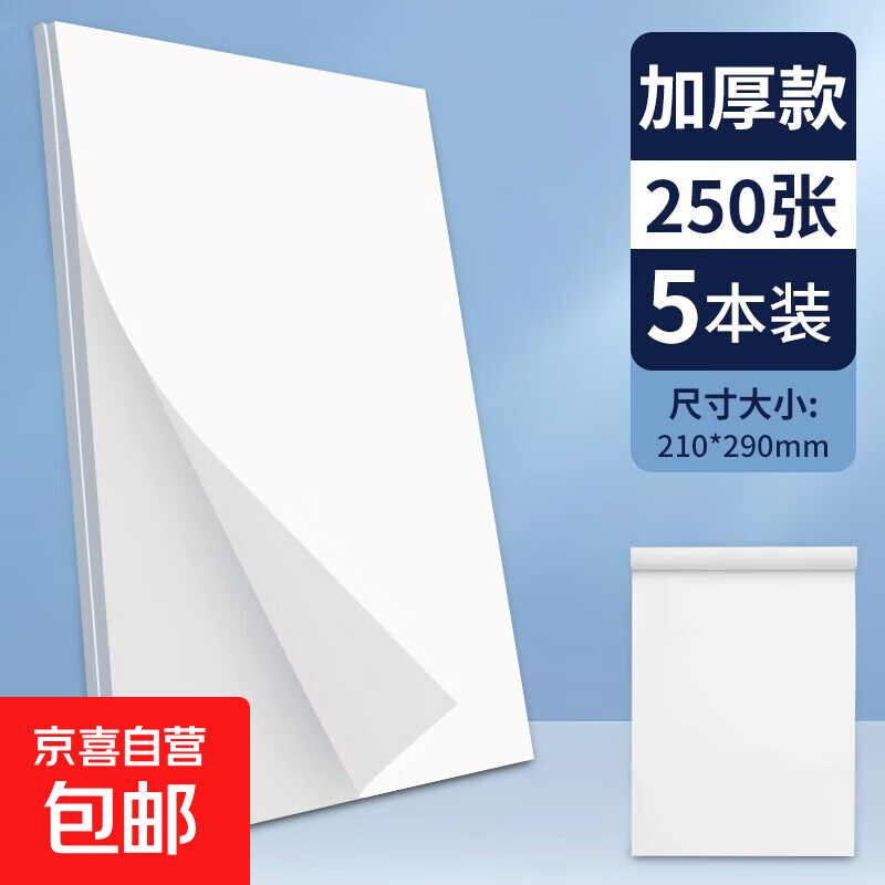 本色多用途草稿纸学生用高中生专用草稿本空白初中生大学生便宜打草稿纸考研a4纸加厚可撕批发 A4草稿纸-5本共250张