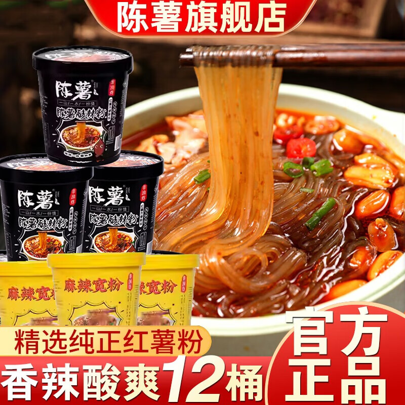 陈薯贵州陈薯酸辣粉黑金版桶装纯红薯粉丝方便冲泡速食食品厂家直发 【12桶组合装】黑金酸辣粉6桶+麻辣宽粉6桶