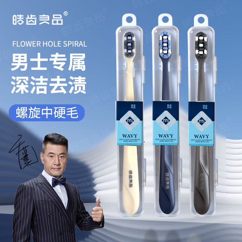 皓齿良品 男士硬毛牙刷特硬毛中硬牙刷高档超强美白去渍刷烟渍专用 超强去渍 不伤牙【中硬毛】 2支