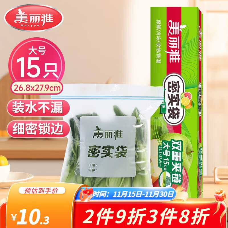 美丽雅收纳袋 食品级加厚自封袋 家用厨房分装收纳袋防水防潮可微波炉 【大号】15只装