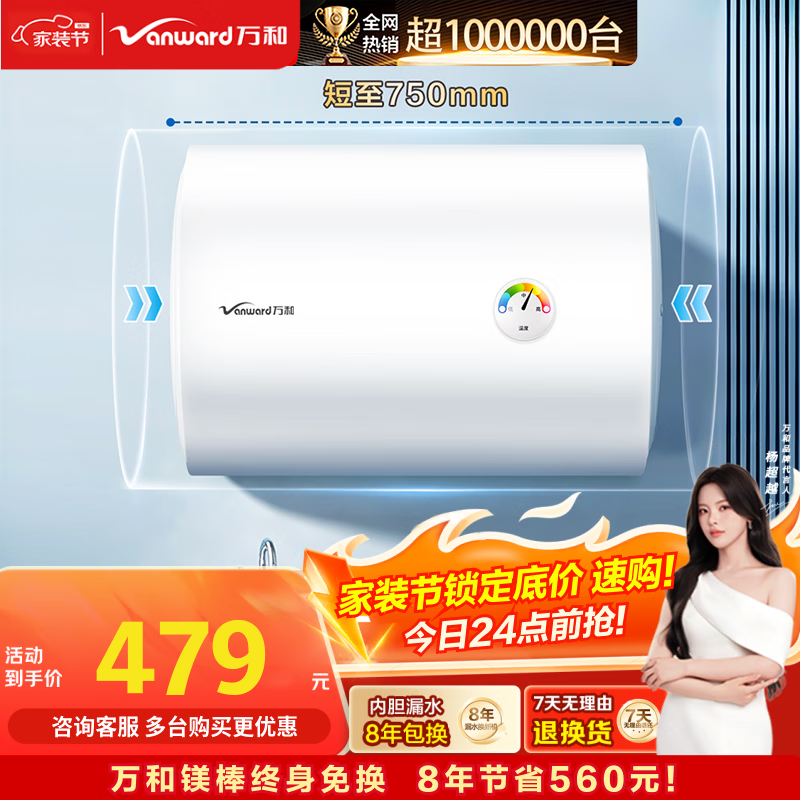 万和【小白云T4Pro】60升2200W速热免换镁棒专利防电墙出水无需断电小体积租房优选电热水器