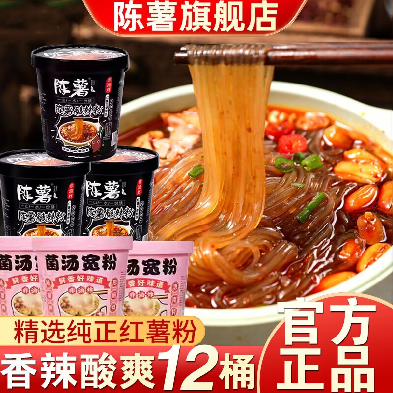 陈薯贵州陈薯酸辣粉黑金版桶装纯红薯粉丝方便冲泡速食食品厂家直发 【12桶组合装】黑金酸辣粉6桶+菌汤宽粉6桶