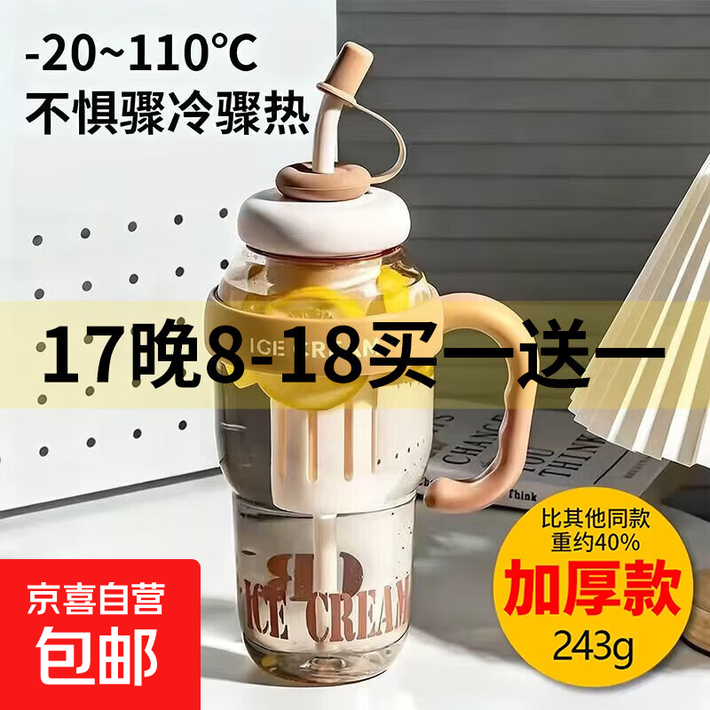 高颜值巨无霸水杯女生便携式手提防烫设计带吸管茶漏花茶塑料水杯 黄色 1.3L