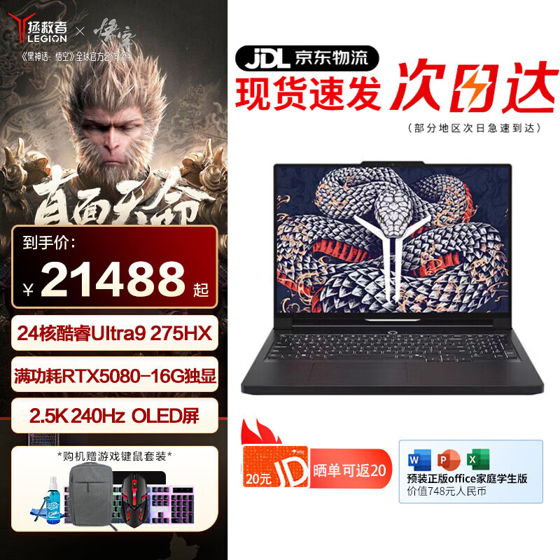 联想拯救者Y9000P AI元启版 2025畅玩黑神话悟空电竞游戏笔记本电脑 满血5060/5070学生娱乐设计办公 Ultra9-275HX RTX5080黑丨至尊版 32G内存 2TB固态 升级款 16英寸 2.5K高刷电竞屏