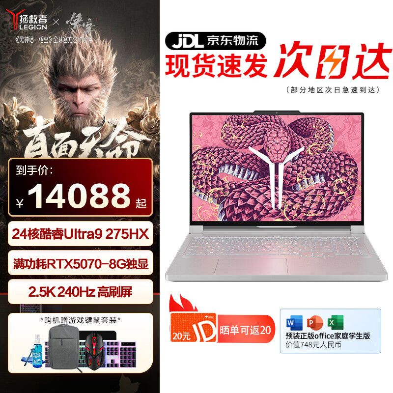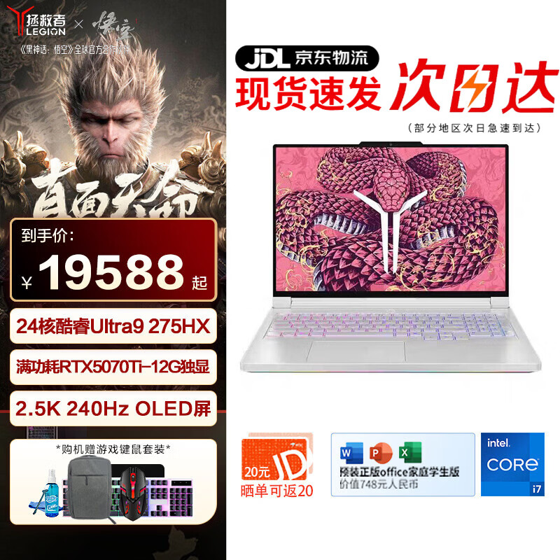 联想拯救者Y9000P AI元启版 2025畅玩黑神话悟空电竞游戏笔记本电脑 满血5060/5070学生娱乐设计办公 Ultra9-275HX 5070Ti 白丨至尊版 64G内存 4TB固态 升级款 16英寸 2.5K高刷电竞屏