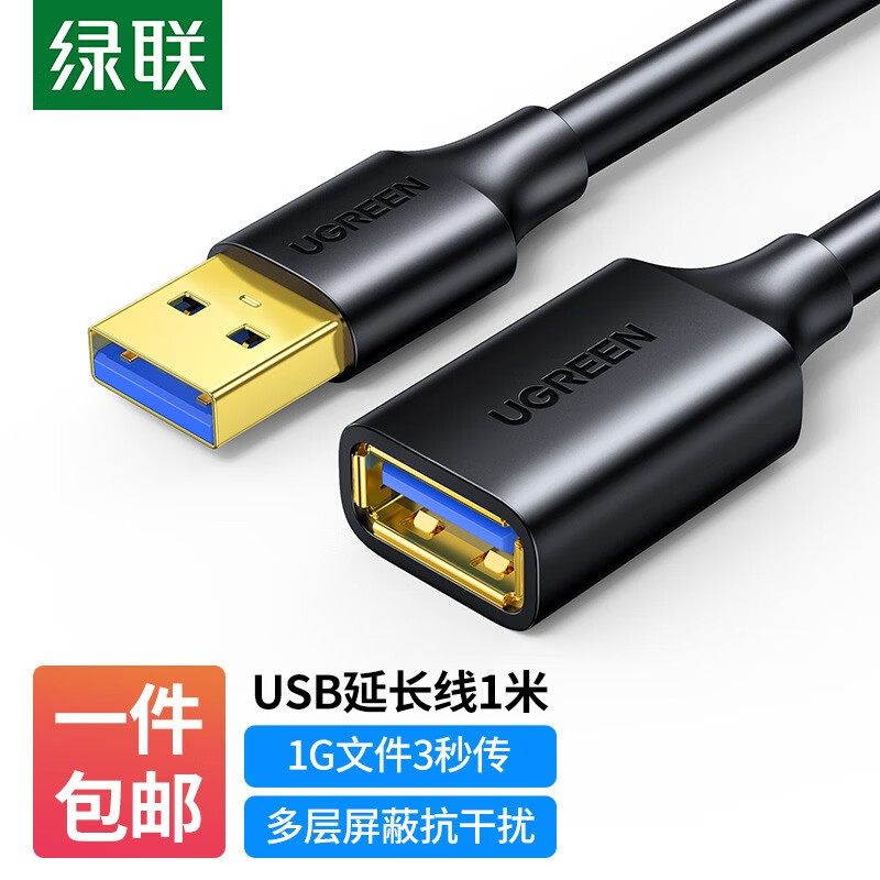 绿联 USB3.0延长线公对母高速传输镀金接口电脑U盘手机无线网卡键盘鼠标加长连接线 USB3.0【高速镀金款】 库存不足请联系客服