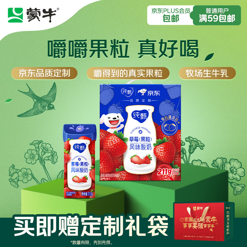 蒙牛纯甄草莓果粒风味酸奶211g*10盒 常温酸牛奶 定制装
