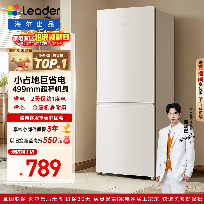 海尔冰箱出品统帅180L两门小冰箱家用二级能效不占地低噪节能省电以旧换新补贴LC2-186L9