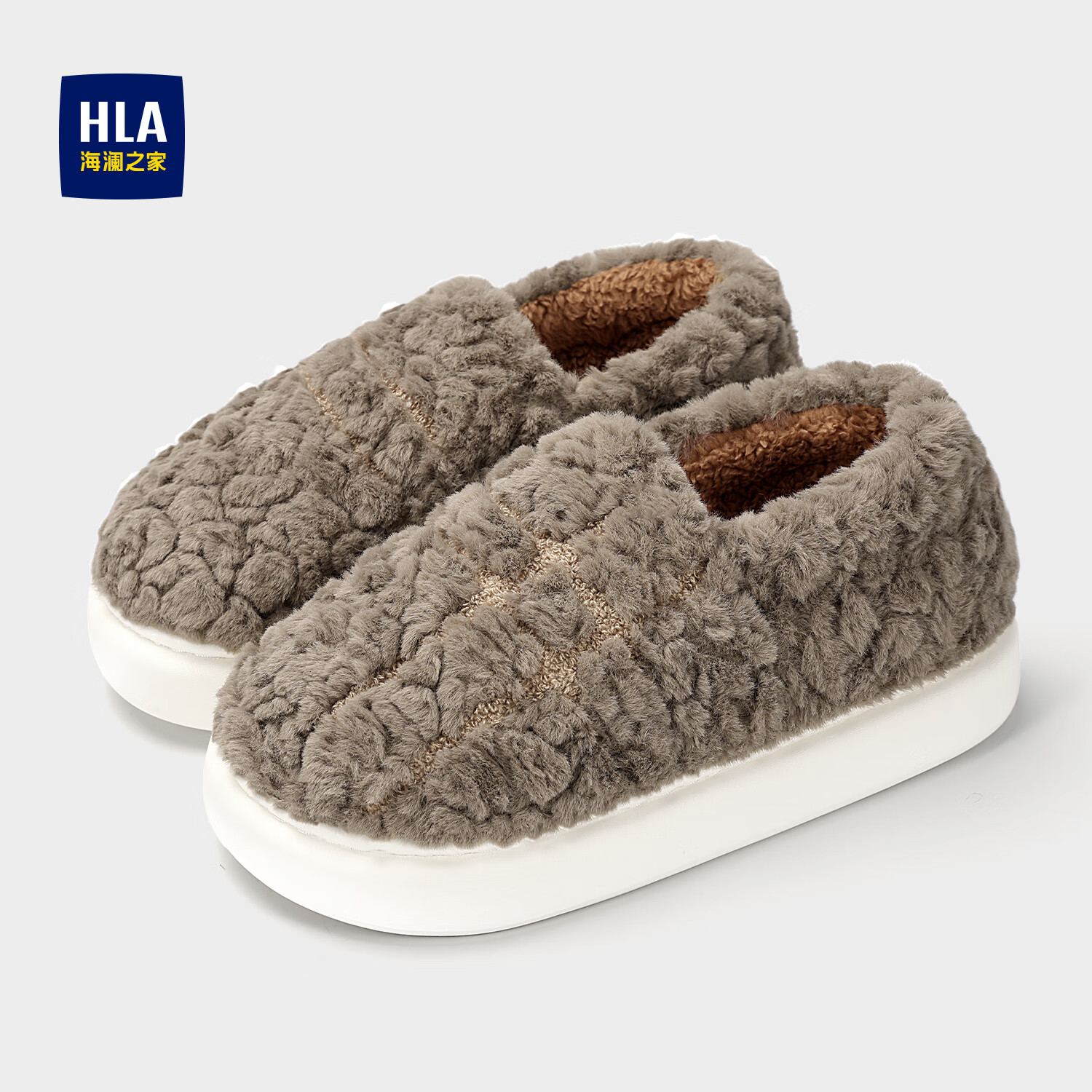 海澜之家(HLA)条纹男士棉拖鞋秋冬季室内家居家加厚毛绒厚底保暖情侣包根棉拖鞋 深咖色 42-43 【适合41-42码脚】