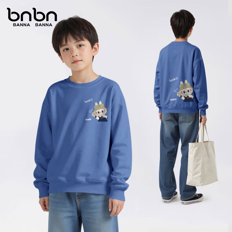 班纳班纳童装儿童卫衣套装2025新款秋季运动潮流宽松女童休闲裤男童上衣 布布拉K_布布拉_右后下靛蓝【双面印花】 160