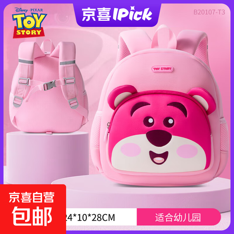 迪士尼(Disney)幼儿园书包超轻透气背包高颜值大容量儿童双肩包 草莓熊款(限时送贴纸两张,款式随机)
