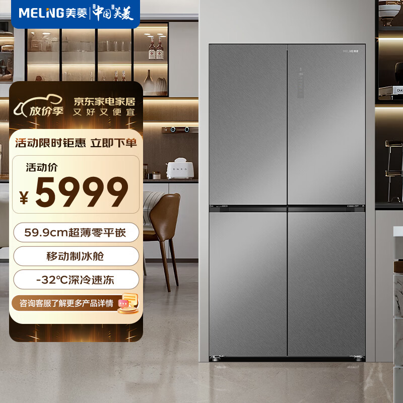 美菱(MeiLing)【真专供】546升浣纱锦235升大冷冻十字59.9cm纯平全嵌移动制冰底部散热BCD-546WSP9BZX-【专】