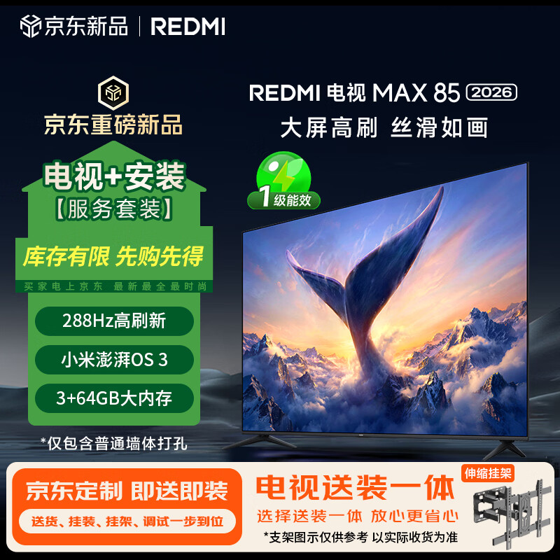 小米(MI)REDMI电视【新一代】MAX 85英寸 2026 包安装版(伸缩挂架送装一体)288Hz高刷新 国家补贴