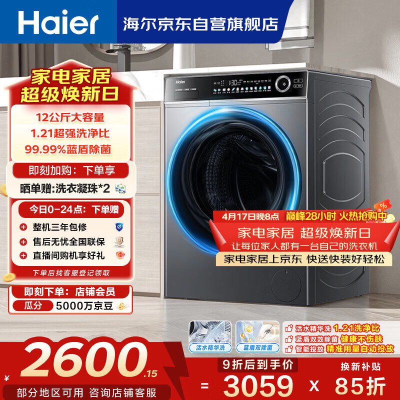 海尔(Haier)滚筒单洗洗衣机全自动家用 12公斤大容量超薄 家电国家补贴 洗羽绒服 一级能效以旧换新 659H