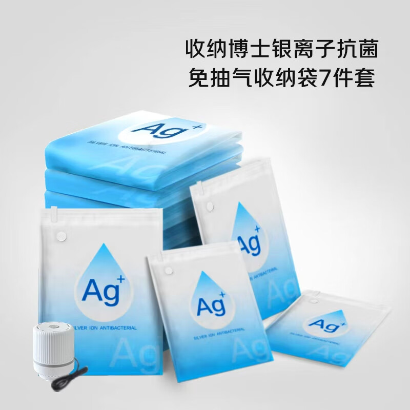 收纳博士真空压缩收纳袋抗菌电动真空泵抽真空被子羽绒衣服抽压两用7件套