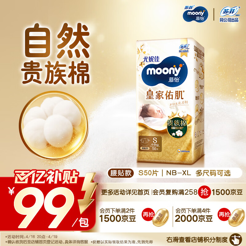 MOONY尤妮佳慕怡皇家新生儿纸尿裤S50片(4-8kg)尿不湿柔软贵族棉