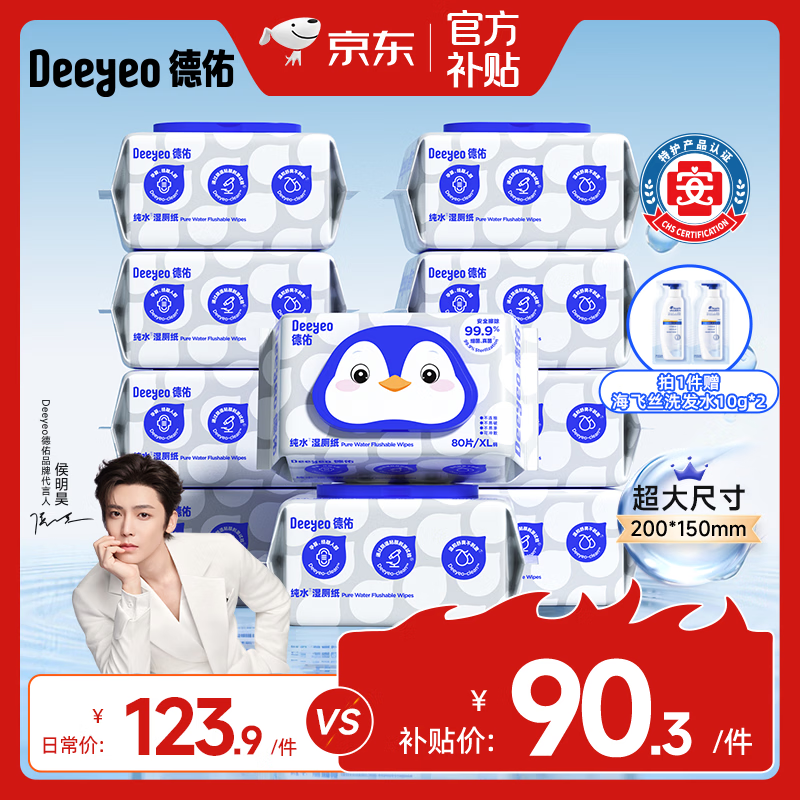 德佑纯水湿厕纸家庭装80抽*10包XL码 湿纸巾厕纸厕所湿巾卫生纸
