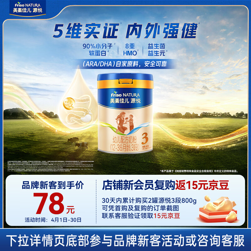 美素佳儿源悦幼儿配方奶粉(12-36月龄,3段)罐装400g (新国标)