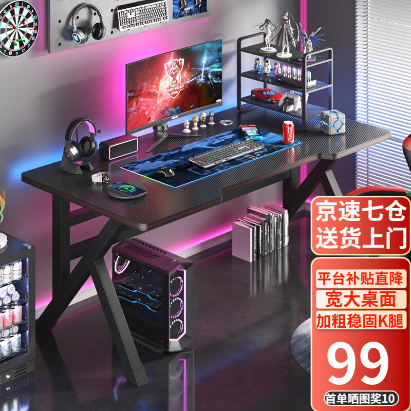 奥伦福特 电脑桌台式家用电竞游戏桌办公书桌简约书房写字桌子 碳纤维纹路单桌-120*60 升级款电竞桌