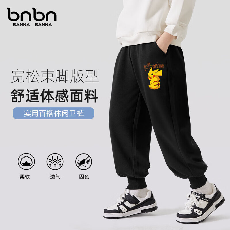 班纳班纳童装儿童卫衣套装2025新款秋季运动潮流宽松女童休闲裤男童上衣 卡丘K黑 140
